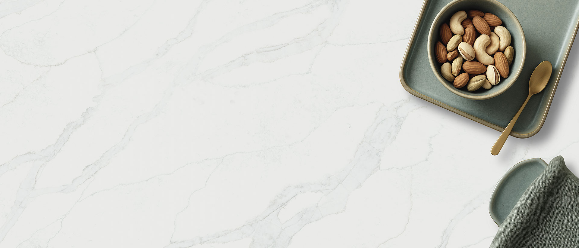 Embrace tranquility with the calming natural beauty of Calacatta Vernello™ , adorned with a palette of soothing cool tones with gorgeous wide light sage green veins accompanied by smaller branches of gray and soft rusty brown hues against a pure white background. Designed to give any room the perfect blend of style and performance, this surface features strength and low maintenance while showcasing the incredible authentic allure of marble. Available in 2cm and 3cm sizes, Calacatta Vernello™ is an easy choice for both residential and commercial applications, as bathroom and kitchen countertops, waterfall islands, accent walls, vanity tops, and anywhere the gentle charm of neutral green tones is desired.