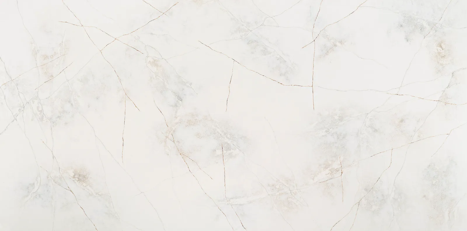 Poanazzo calacatta marble-inspired quartz, featuring a white, tan and grey background with flowing beige, grey and rust veining.