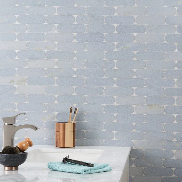 Alanis Celeste Pearl Alanis Celeste Pearl Polished Marble + Pearl Sheet size: 9.96″ x 11.22″ Sheet coverage: .77 sqft Material: Blue Celeste & Pearl Thickness: 10mm Usage: Wall only