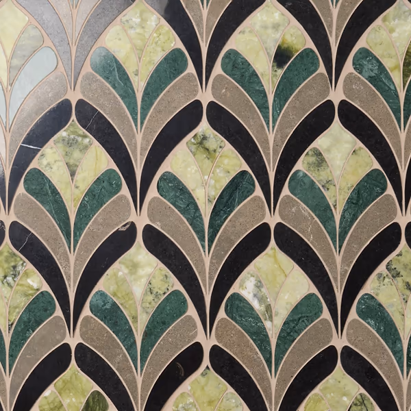Rosalia Verde Green Floral Marble Mosaic Tile